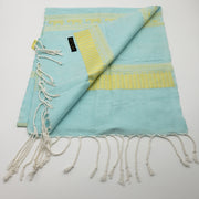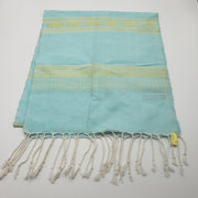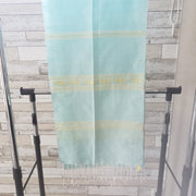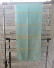 ラオス伝統のスカーフとなります。ですが、使い方は自由です。淡い水色でとてもきれいです。