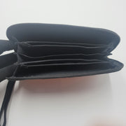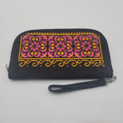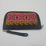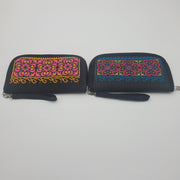 当商品は、ラオスの障害者施設で制作されたものになります。ラオス伝統の生地と柄を使った商品です。小銭入れなどに使用できるチャック付き小口が2つ付いています。