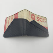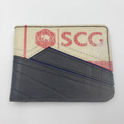 タイヤを再利用して作った財布です。表面は比較的水にも強いです。カンボジアの障害者施設で一つ一つ手作りで作っています。小銭入れはありません。