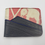 タイヤを再利用して作った財布です。表面は比較的水にも強いです。カンボジアの障害者施設で一つ一つ手作りで作っています。小銭入れはありません。