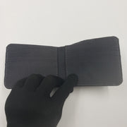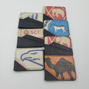 タイヤを再利用して作った財布です。表面は比較的水にも強いです。カンボジアの障害者施設で一つ一つ手作りで作っています。小銭入れはありません。