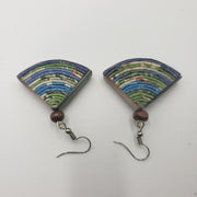 当商品は、ラオスの障害者施設で制作されたものになります。ラオス伝統の色使いのピアスになります。柄の部分はラオスの紙でできております。