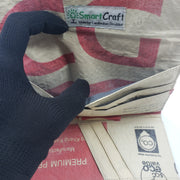 材質:車のタイヤのインナー部分、セメント袋、バイクのビニールシート、ボタン、ファスナー等